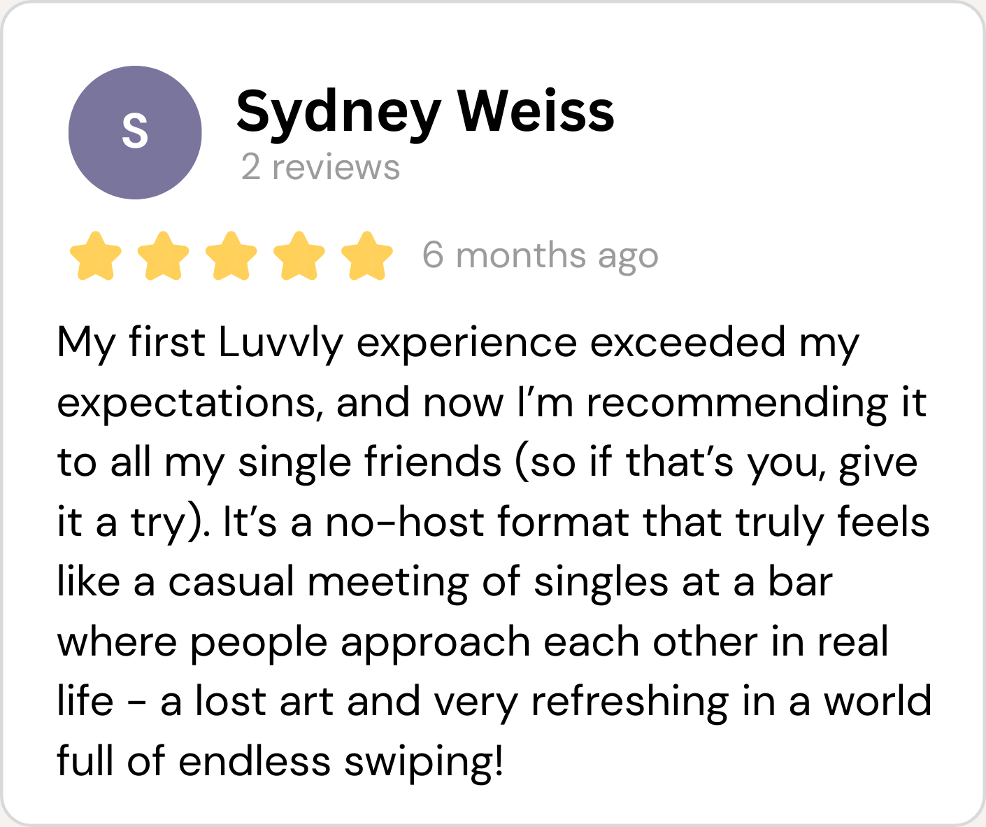 No wondering if someone is actually single or interested in dating, everyone in the room with you shows up with the same shared mindset and purpose.