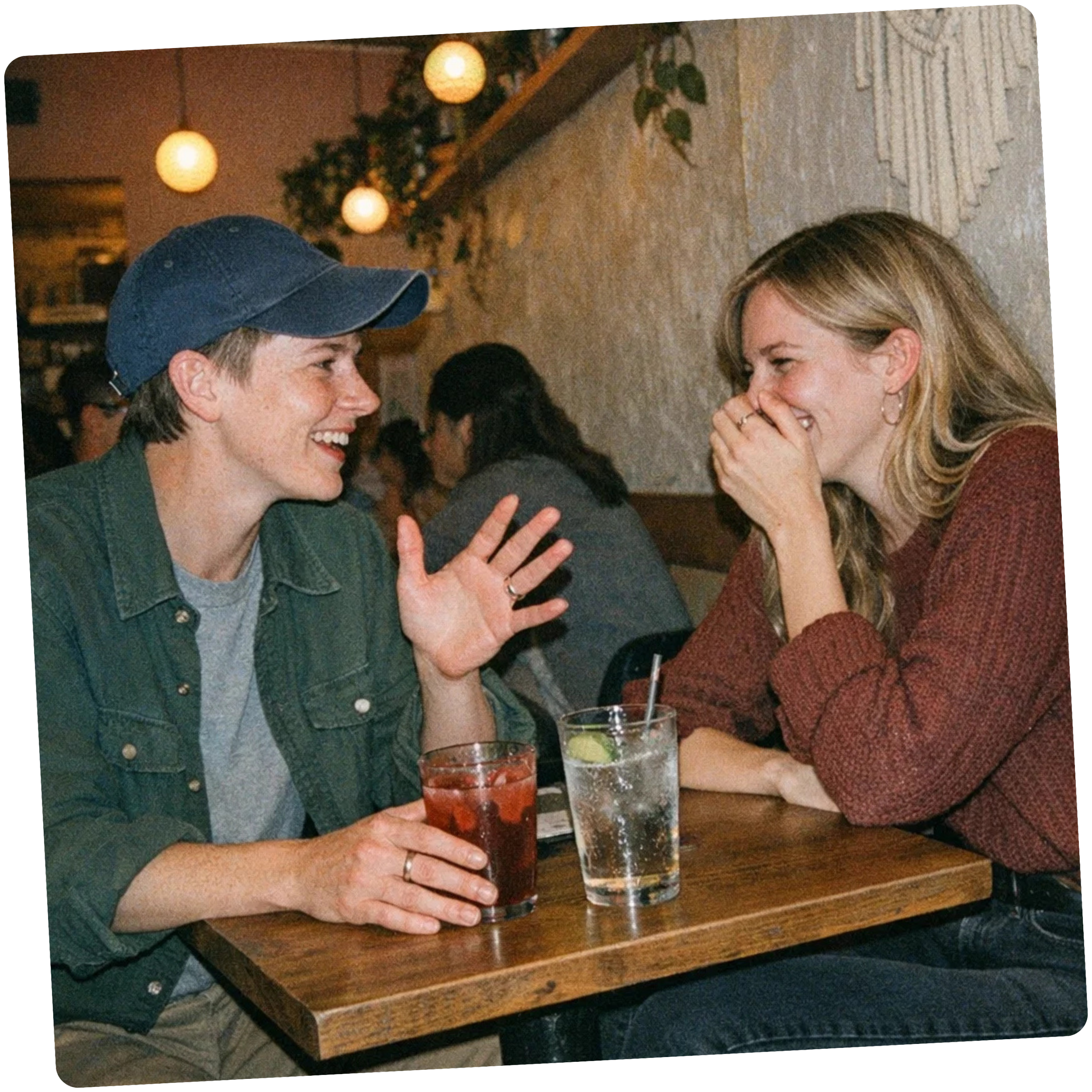 no lengthy bios, hours wasted swiping, or algorithms to impress; meet queer women face-to-face where real chemistry is obvious in minutes